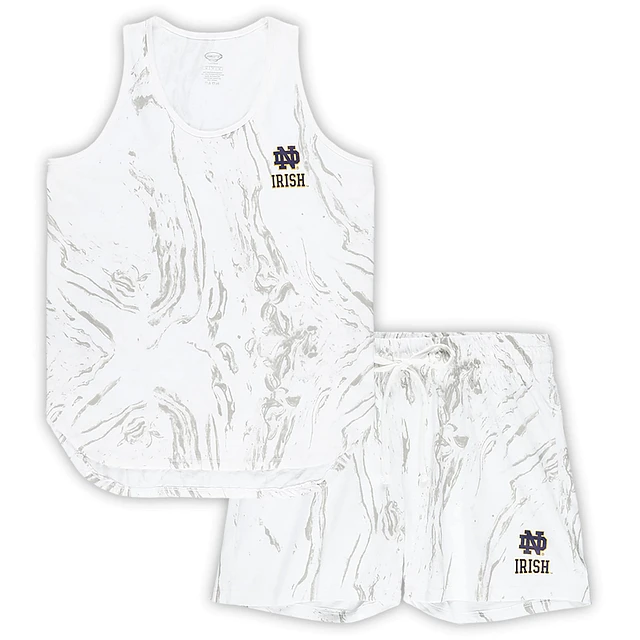 Women's Profile White Notre Dame Fighting Irish Plus Marble Tank and Shorts Set