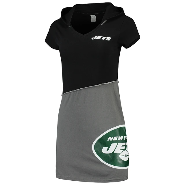 Women's Refried Apparel Black/Gray New York Jets Sustainable Hooded Mini Dress