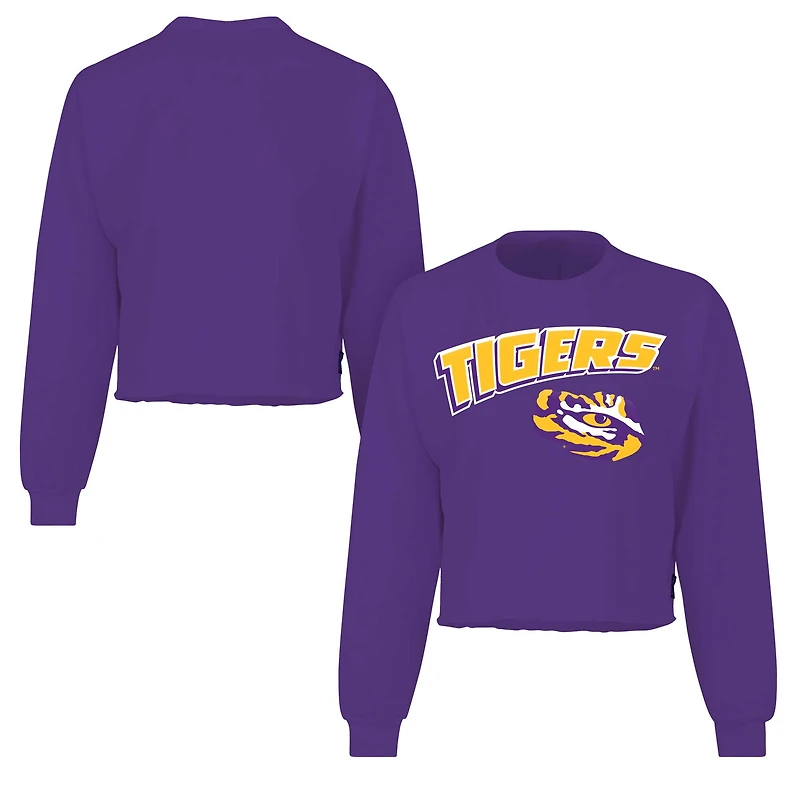 Stay at the top of your fashion game in this LSU Tigers Slouchy cropped T-shirt. Designed by Spirit Jersey, it features LSU Tigers graphics printed in low-puff details across the front. The unfinished hem adds a vintage touch to this trendy tee.