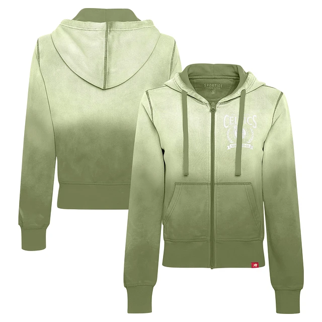 Women's Sportiqe Olive Boston Celtics Carli Sun Fade Full-Zip Hoodie