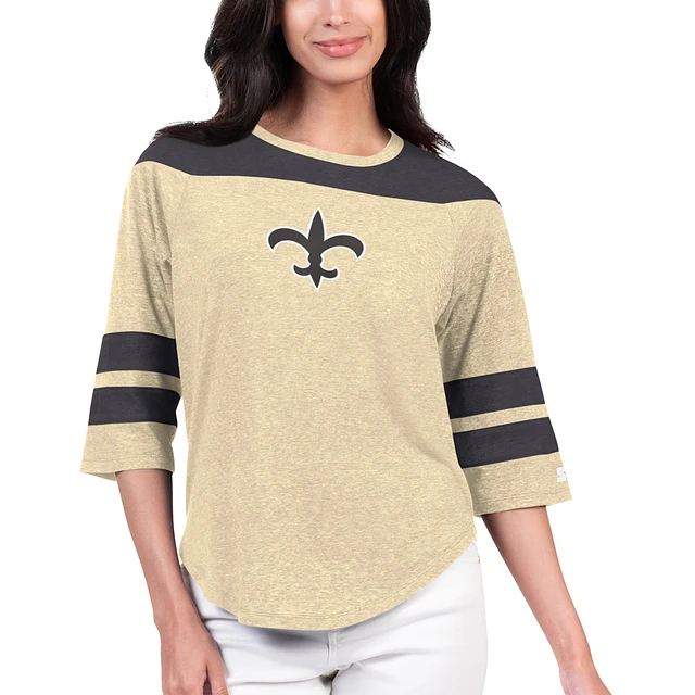 Women's Starter Gold New Orleans Saints Fullback Tri-Blend 3/4-Sleeve T-Shirt