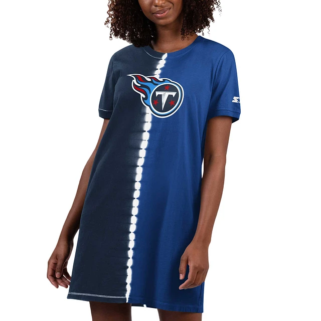 Women's Starter Navy Tennessee Titans Ace Tie-Dye T-Shirt Dress