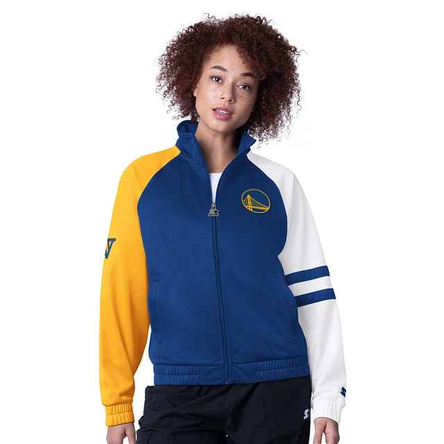Women's Starter Royal Golden State Warriors Line Up Dolman Raglan Full-Zip Track Jacket