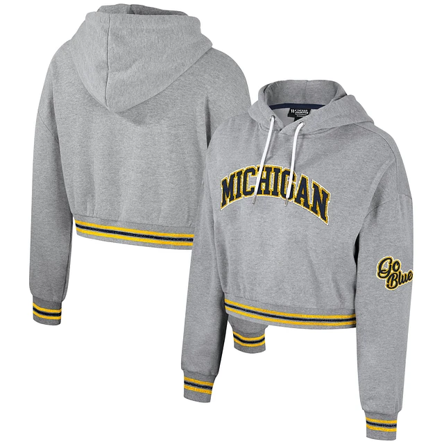 Women's The Wild Collective Heather Gray Michigan Wolverines Cropped Shimmer Pullover Hoodie