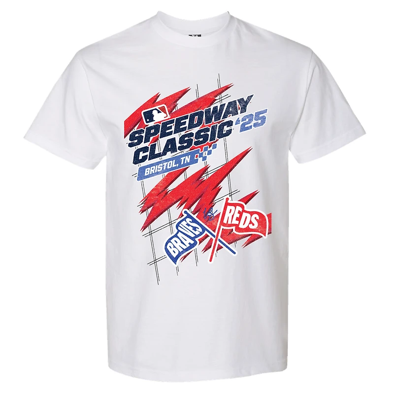 Gear up for the 2025 Speedway Classic in style with this Cincinnati Reds vs. Atlanta Braves Flags T-Shirt from The Wild Collective. The relaxed fit ensures a comfortable and unrestricted feel, perfect for enjoying every moment of the game. The commemorative graphics celebrate the historic 2025 Speedway Classic between the Cincinnati Reds and Atlanta Braves at Bristol, making it a unique and stylish way to remember this special MLB event.