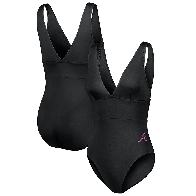 Radiate confidence at the beach, pool or lake in this Atlanta Braves Palm Modern one-piece swimsuit. Thoughtfully designed by Tommy Bahama, it features a plunging V-neckline, a dramatic cut that accentuates natural curves and smoothing ultra-soft fabric. This flattering Atlanta Braves swimsuit provides excellent UV protection and flexible movement thanks to the four-way stretch material.