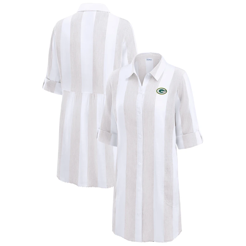 Women's Tommy Bahama Khaki/White Green Bay Packers Rugby Beach Stripe Button-Up Tunic in Vernon, BC