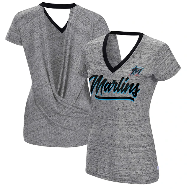Women's Touch Black Miami Marlins Halftime Back Wrap Top V-Neck T-Shirt
