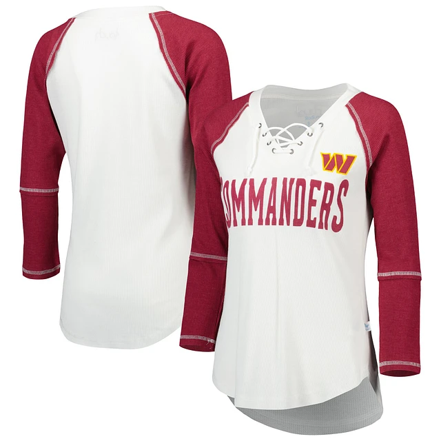 Women's Touch White/Burgundy Washington Commanders Rebel Raglan Tri-Blend 3/4-Sleeve Lace-Up V-Neck T-Shirt