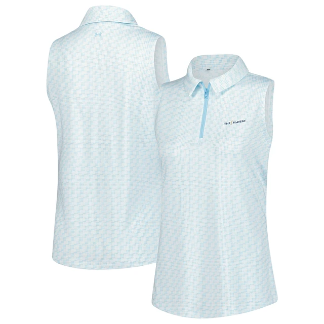 Women's Under Armour Aqua THE PLAYERS Drive Clubhouse Grid Sleeveless Polo