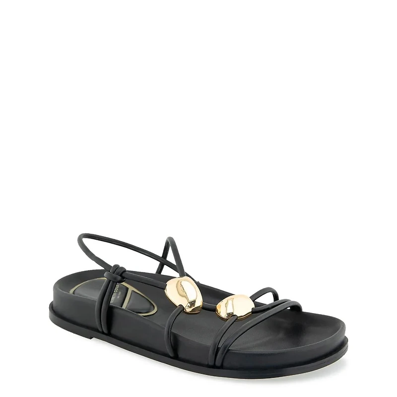 Meet the VERA by Kenneth Cole New York, a sleek, minimalist sandal crafted with slender straps and elevated with sculptural gold accents. The clean design brings effortless sophistication, making VERA the perfect warm-weather staple for chic everyday wear.