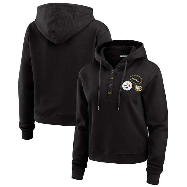 Women's WEAR by Erin Andrews Black Pittsburgh Steelers Waffle Hoodie Pullover Top