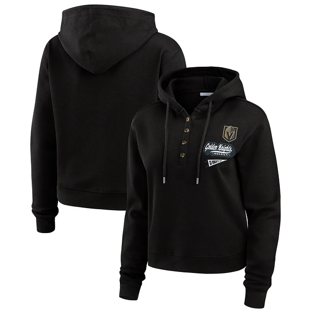 Women's WEAR by Erin Andrews Black Vegas Golden Knights Waffle-Knit Pullover Hoodie