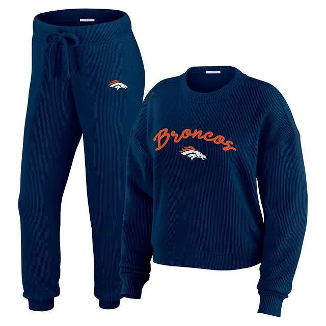 Women's WEAR by Erin Andrews Cream Denver Broncos Knitted Tri-Blend Long Sleeve T-Shirt & Pants Lounge Set