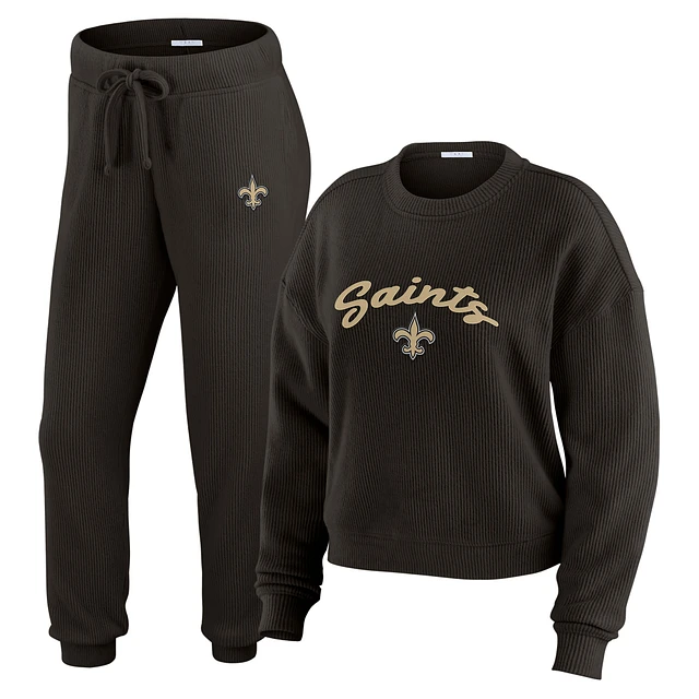 Women's WEAR by Erin Andrews Cream New Orleans Saints Plus Knitted Tri-Blend Long Sleeve T-Shirt & Pants Lounge Set