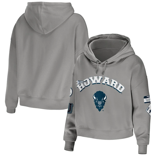 Women's WEAR by Erin Andrews Gray Howard Bison Mixed Media Cropped Pullover Hoodie