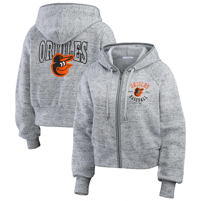 Women's WEAR by Erin Andrews Heather Gray Baltimore Orioles Speckled Fleece Cropped Full-Zip Hoodie