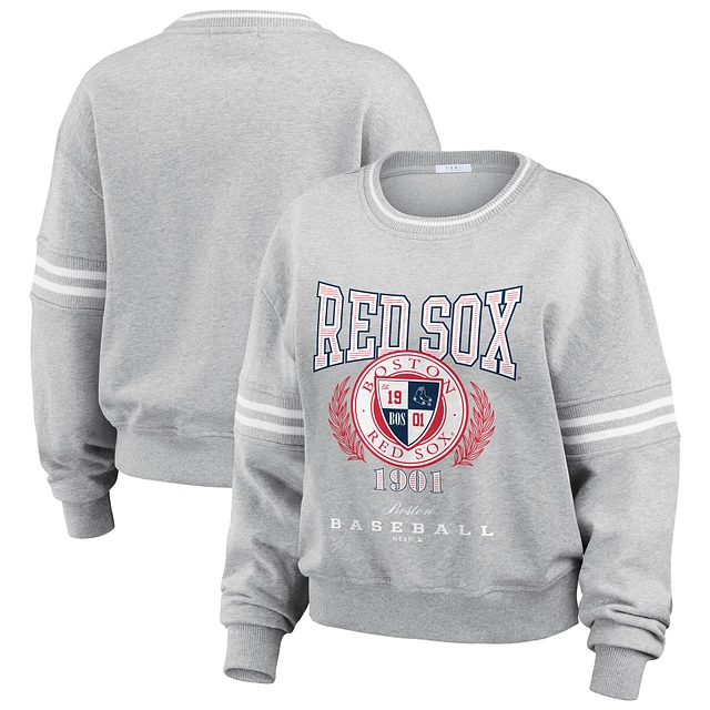 Women's WEAR by Erin Andrews Heather Gray Boston Red Sox Domestic Crest Pullover Sweatshirt