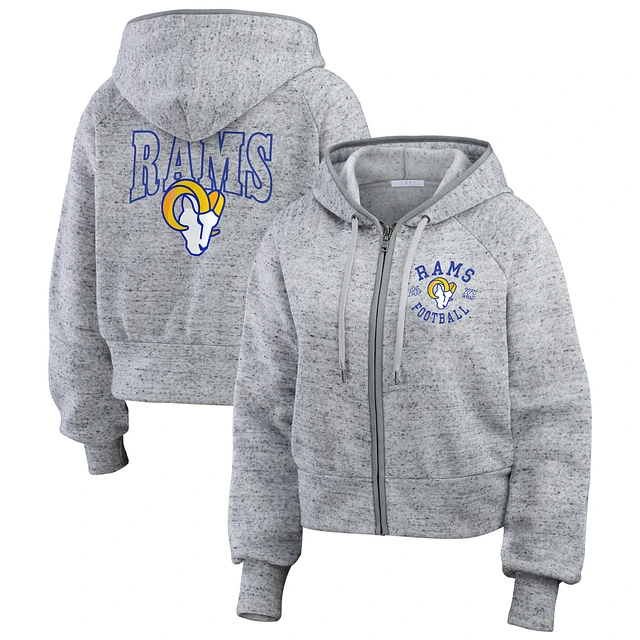 Women's WEAR by Erin Andrews Heather Gray Los Angeles Rams Speckled Fleece Cropped Full-Zip Hoodie