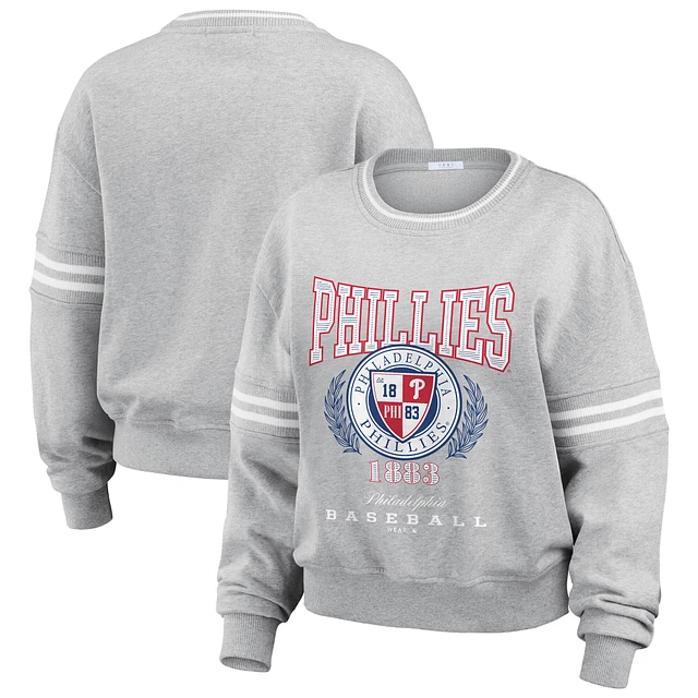 Women's WEAR by Erin Andrews Heather Gray Philadelphia Phillies Domestic Crest Pullover Sweatshirt