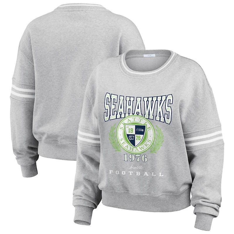Women's WEAR by Erin Andrews Heather Gray Seattle Seahawks Crest Cropped Pullover Sweatshirt