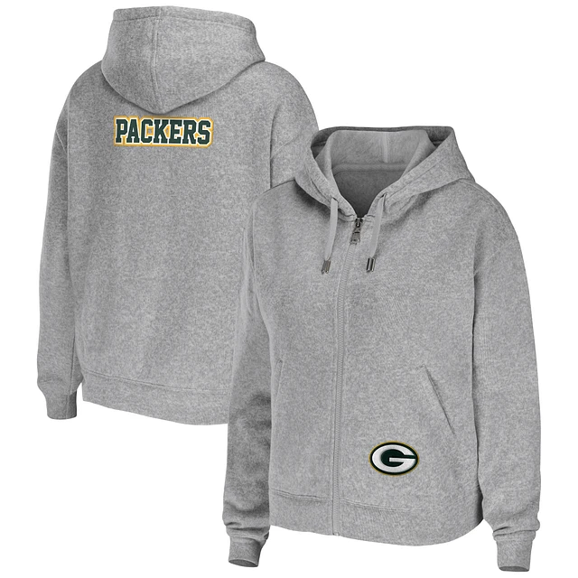 Women's WEAR by Erin Andrews Heathered Gray Green Bay Packers Team Full-Zip Hoodie