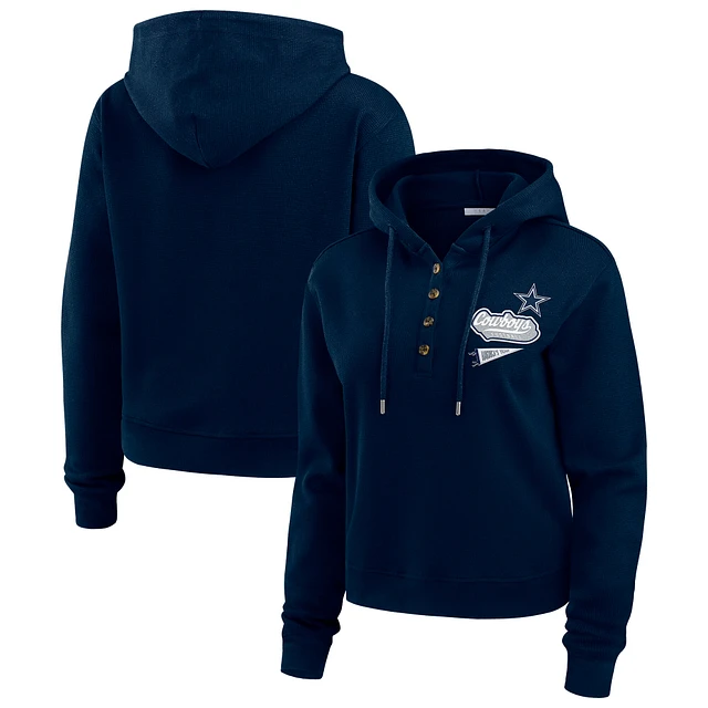Women's WEAR by Erin Andrews Navy Dallas Cowboys Waffle-Knit Pullover Hoodie