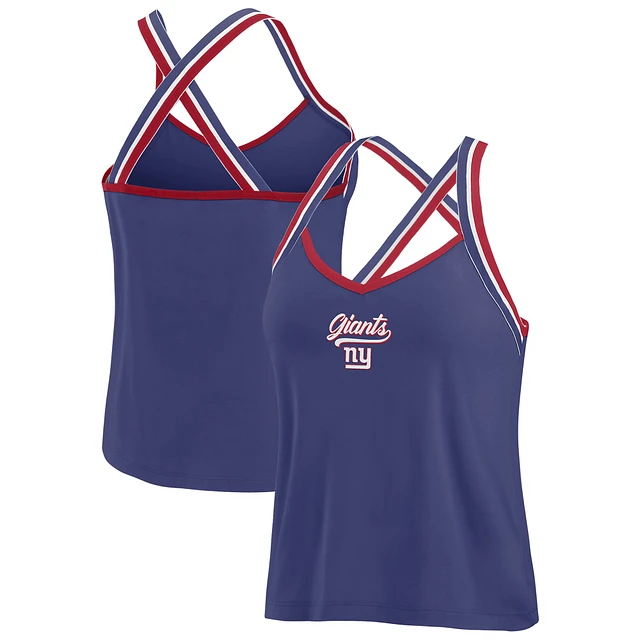 Women's WEAR by Erin Andrews Royal New York Giants Cross Strap Tri-Blend Tank Top