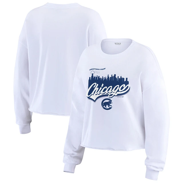 Women's WEAR by Erin Andrews White Chicago Cubs Domestic Postcard Long Sleeve T-Shirt