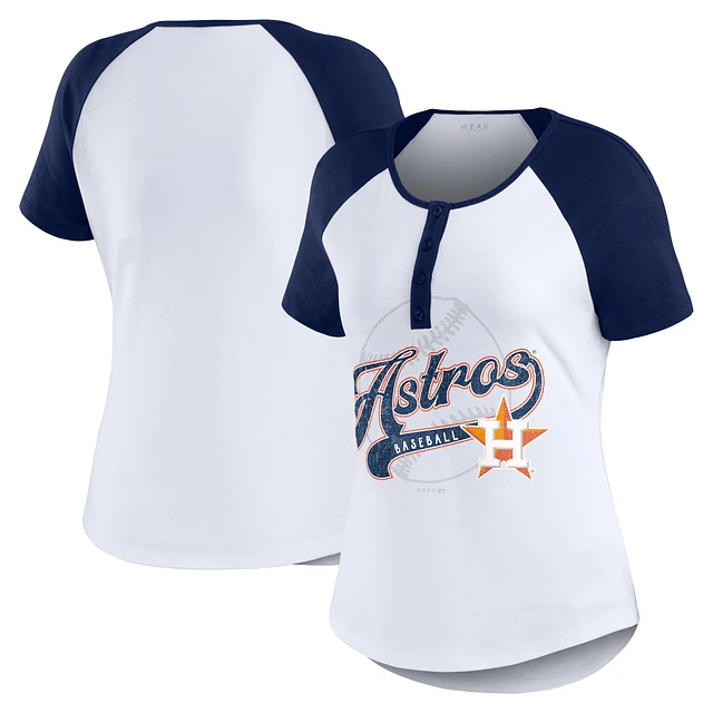 Women's WEAR by Erin Andrews White/Navy Houston Astros Fitted Henley Raglan T-Shirt