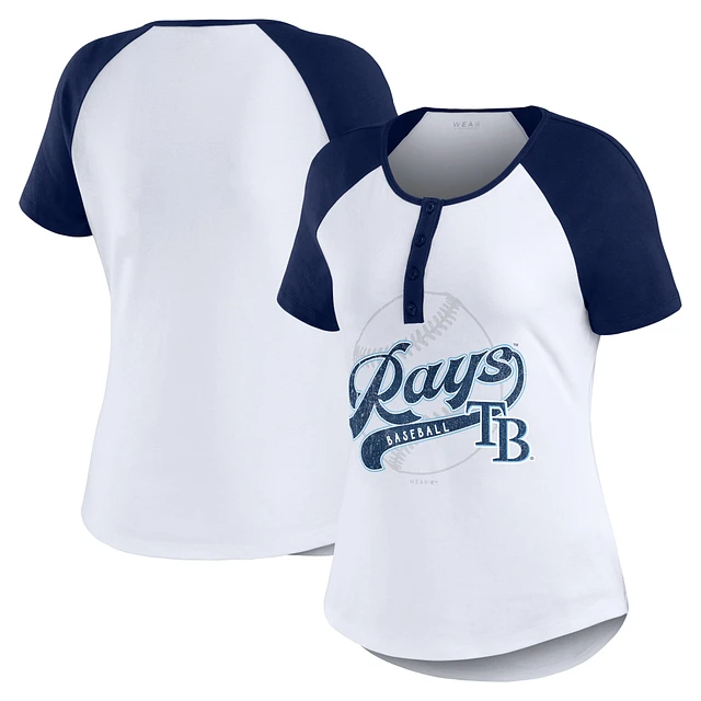 Women's WEAR by Erin Andrews White/Navy Tampa Bay Rays Fitted Henley Raglan T-Shirt