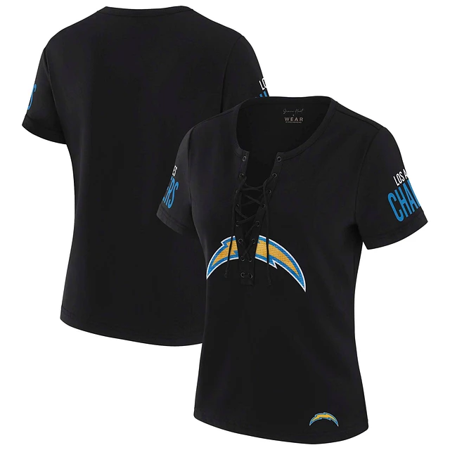 Women's WEAR by Erin Andrews x Gracie Hunt Black Los Angeles Chargers Draft Me Lace-Up T-Shirt