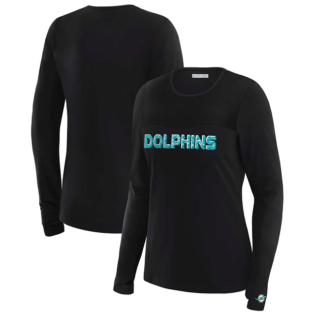 Women's WEAR by Erin Andrews x Gracie Hunt Black Miami Dolphins Mesh Panel Long Sleeve T-Shirt