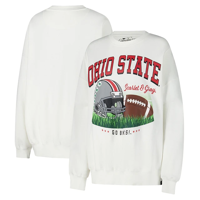 Women's White Ohio State Buckeyes Oversized Malone Multimedia Football Pullover Sweatshirt