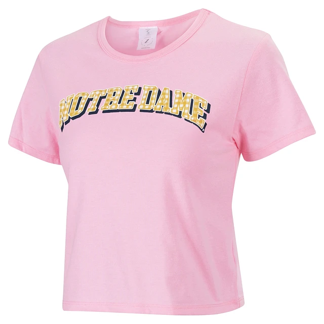 Women's ZooZatz Pink Notre Dame Fighting Irish Gingham Logo Cropped T-Shirt