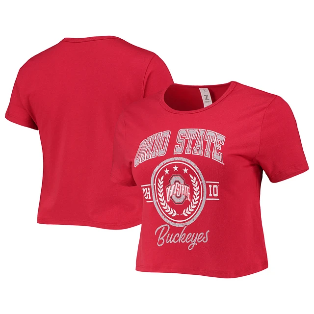 Women's ZooZatz Scarlet Ohio State Buckeyes Core Laurels Cropped T-Shirt