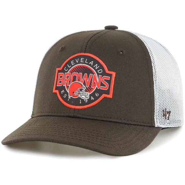 Youth '47 Brown/White Cleveland Browns Scramble Adjustable Trucker Hat