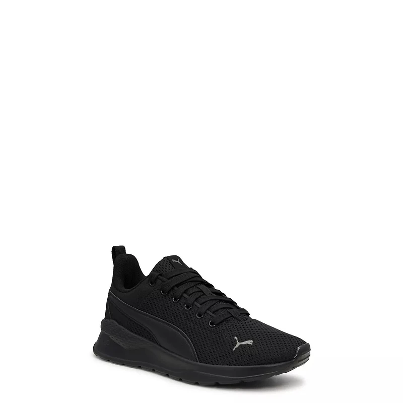 Uniform friendly and lightweight, these boy's Puma Anzarun Lite black running shoes come with breathable fabric upper, round toe, adjustable lace-up closure, side tonal form stripe for branding style, odorless Softfoam insole that adjusts to your foot shape to provide optimal comfort, EVA foam midsole for cushioning support, and flexible, durable rubber sole.