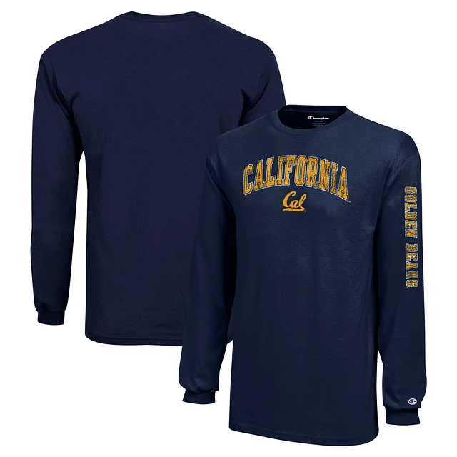 Youth Champion Navy Cal Bears Distressed Arch Over Logo Long Sleeve T-Shirt