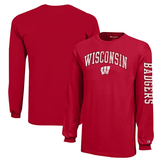 Youth Champion Red Wisconsin Badgers Distressed Arch Over Logo Long Sleeve T-Shirt