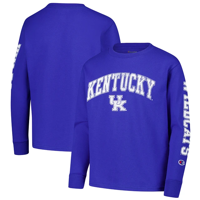 Youth Champion Royal Kentucky Wildcats Distressed Arch Over Logo Long Sleeve T-Shirt