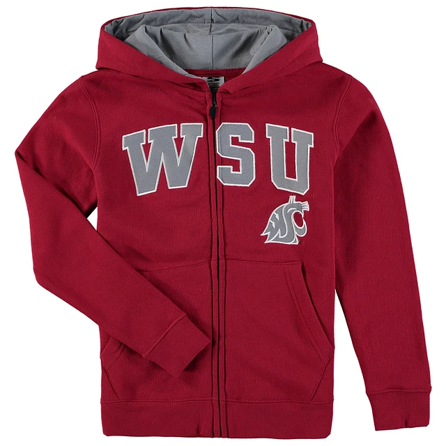 Youth Crimson Washington State Cougars Applique Arch & Logo Full-Zip Hoodie