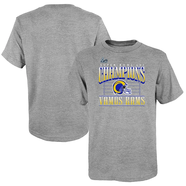 Youth Fanatics Heathered Gray Los Angeles Rams Super Bowl LVI Champions Game Plan Hometown T-Shirt