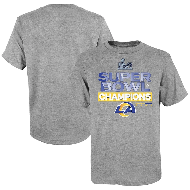 Youth Fanatics Heathered Gray Los Angeles Rams Super Bowl LVI Champions Locker Room Trophy Collection T-Shirt