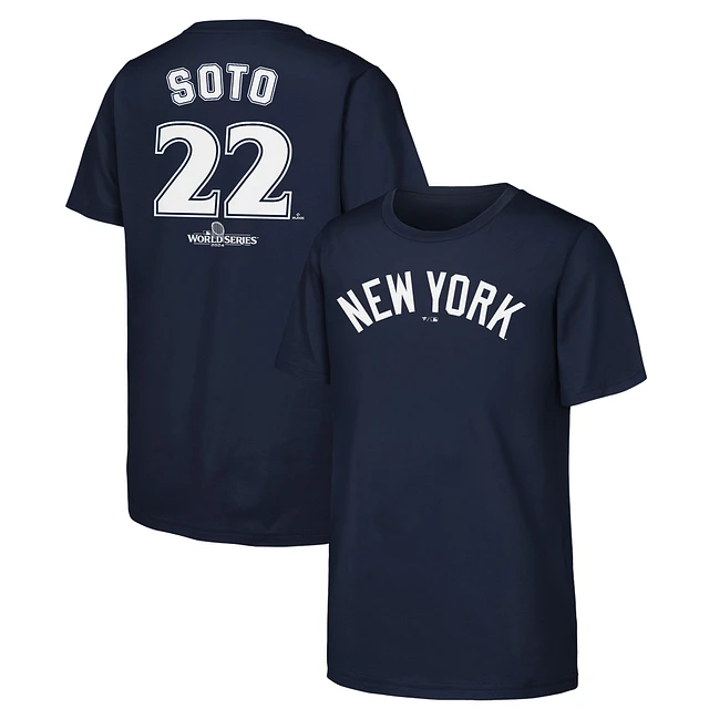 Youth Fanatics Juan Soto Navy New York Yankees 2024 World Series Player Name & Number T-Shirt