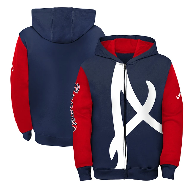 Youth Fanatics Navy/Red Atlanta Braves Postcard Full-Zip Hoodie Jacket