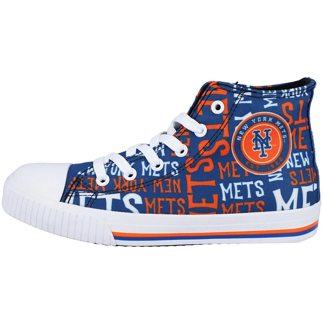 Youth FOCO Royal New York Mets Repeat Wordmark High Top Canvas Allover Sneakers