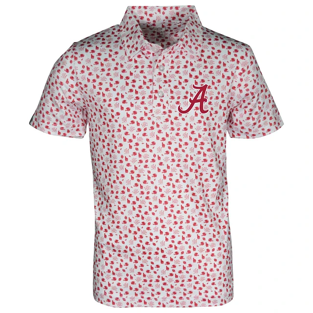 Youth Garb White Alabama Crimson Tide Earnest Allover Print Polo