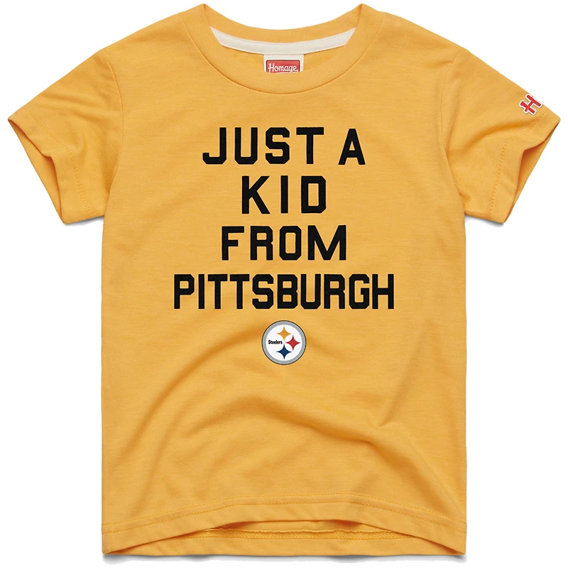 Let your young fan rep the Pittsburgh Steelers in this Just a Kid Tri-Blend T-Shirt from Homage. This tri-blend tee offers a super-soft feel thanks to its unique blend of polyester, cotton, and rayon. The screen printed graphics on the front provide a vintage look that celebrates the Pittsburgh Steelers.