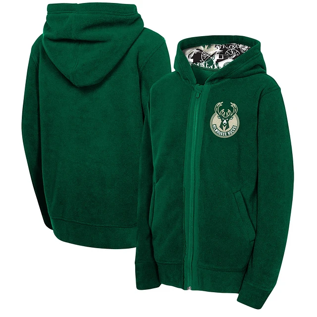 Youth Hunter Green Milwaukee Bucks Key Line Sherpa Full-Zip Hoodie